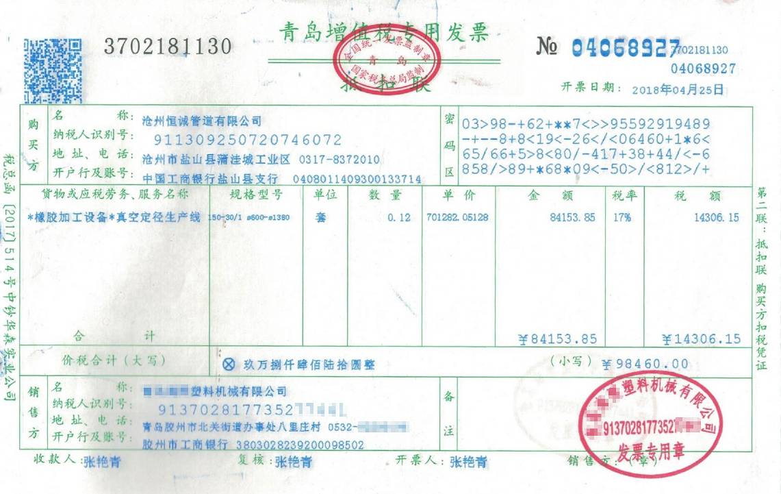 保溫皮套管擠出機(jī)設(shè)備發(fā)票